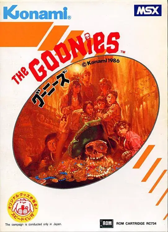 구니스는 1985년에 개봉한 영화의 인기를 바탕으로 만들어졌다. 오락실 게임 버전과 MSX 컴퓨터 게임 두 가지 버전이 대표적인데 개인적으로 MSX 판이 더 아기자기하고 짜임새 있다. 아케이드 스타일의 어드벤처 게임이며 어린 친구가 해적이 숨겨둔 보물을 찾아 동굴을 탐색한다. 점프와 뒤를 쫓는 적과의 전투, 아이템 수집으로 진행된다. 제한된 시간 안에 보물을 찾아내야 한다. 당시의 픽셀 아트와 신디로퍼의 주제곡을 BGM 화하여 레트로 베스트 게임에 속한다. MSX판과 닌텐도 패미컴판이 같은데, 당시 BGM 담당자가 악마성 드라큘라를 담당했던 테라지마 리에다. 20주년 기념으로 2006년에 brain games에서 구니스 리메이크를 했다.