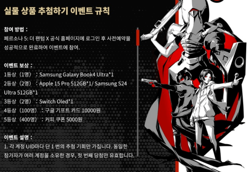 페르소나 5 팬텀 X 이벤트 상품 안내